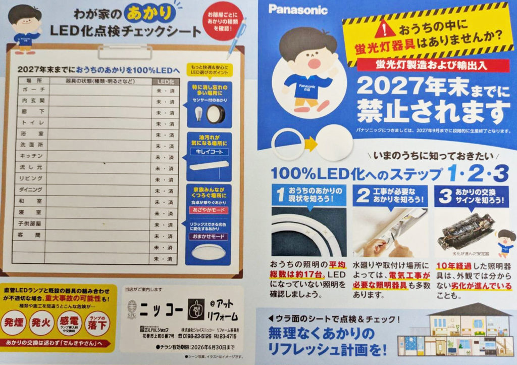 ご自宅の照明がLED化できているか、この機会にぜひチェックしてみましょう。