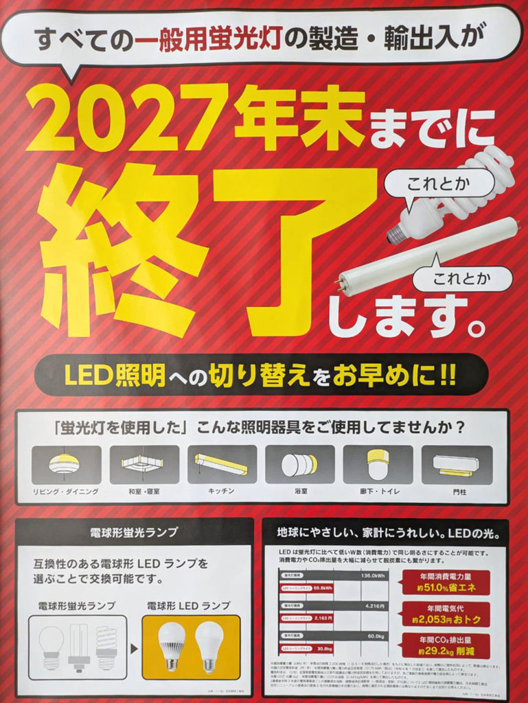 これを機に、省エネで長寿命なLED照明への切り替えを早めにおすすめいたします。