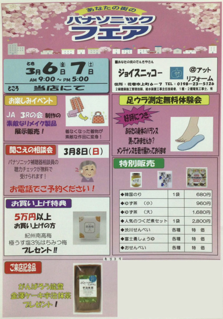 当店では、下記日程にて春のパナソニックフェアを開催いたします。